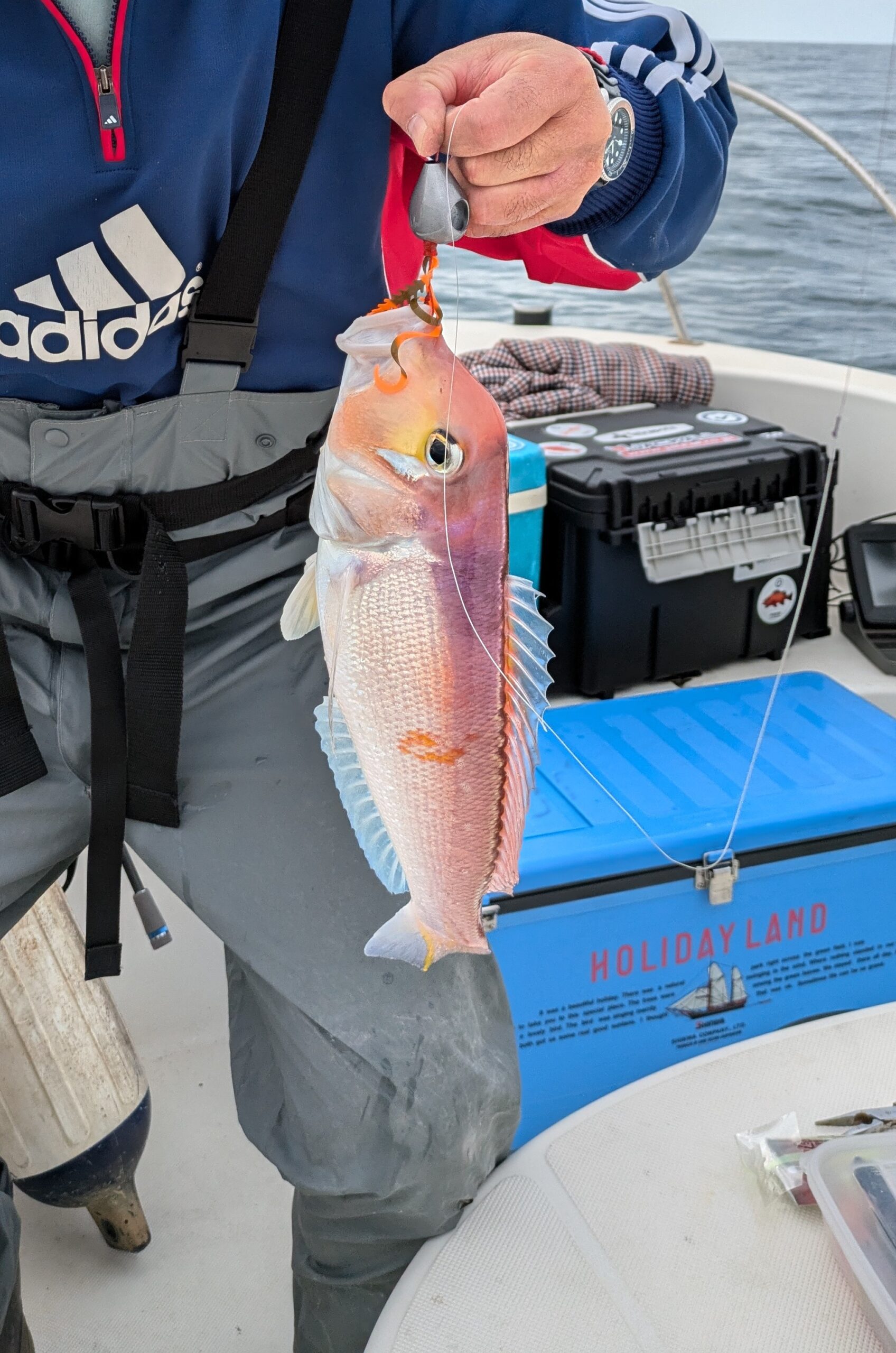 朝一潮は動いてましたが食いはイマイチ。 深場に移動してから外道の連発です。 座布団あがりました!