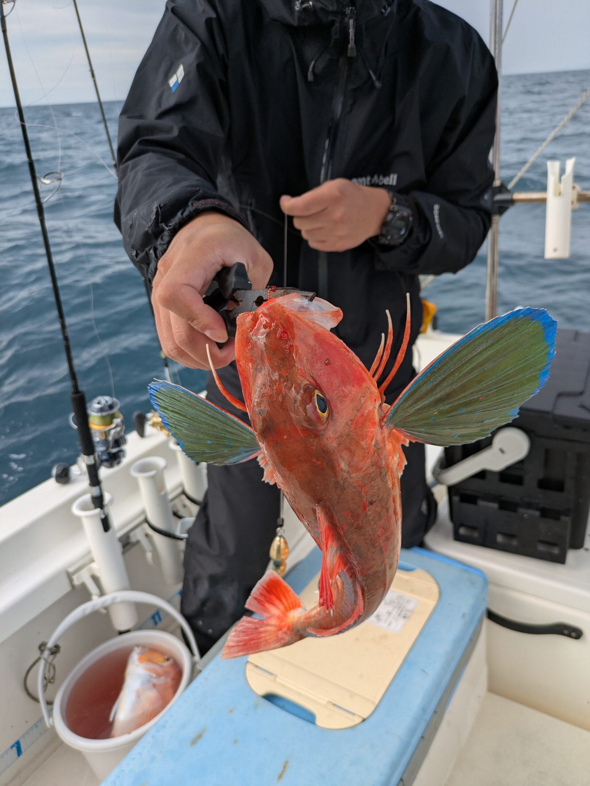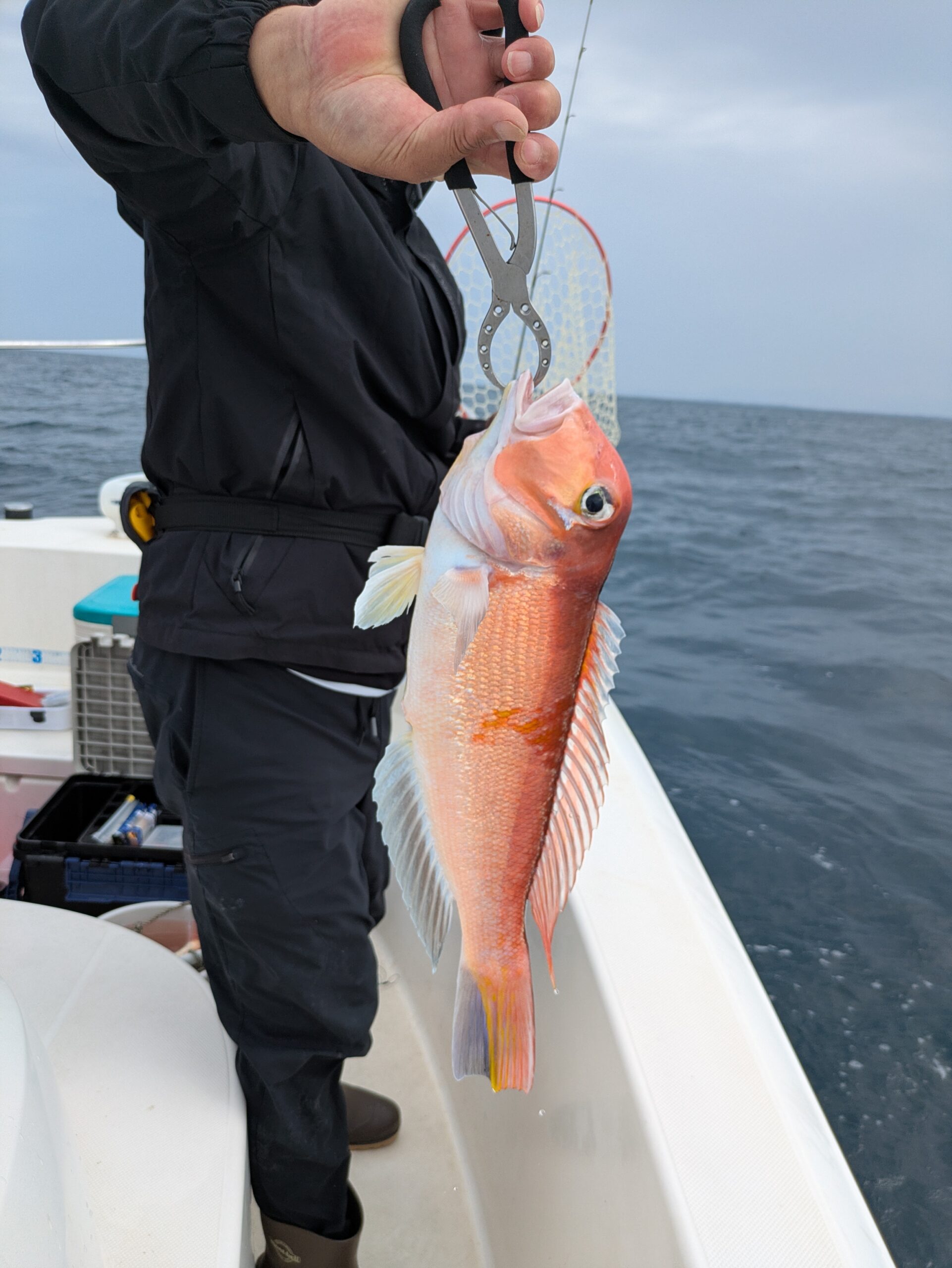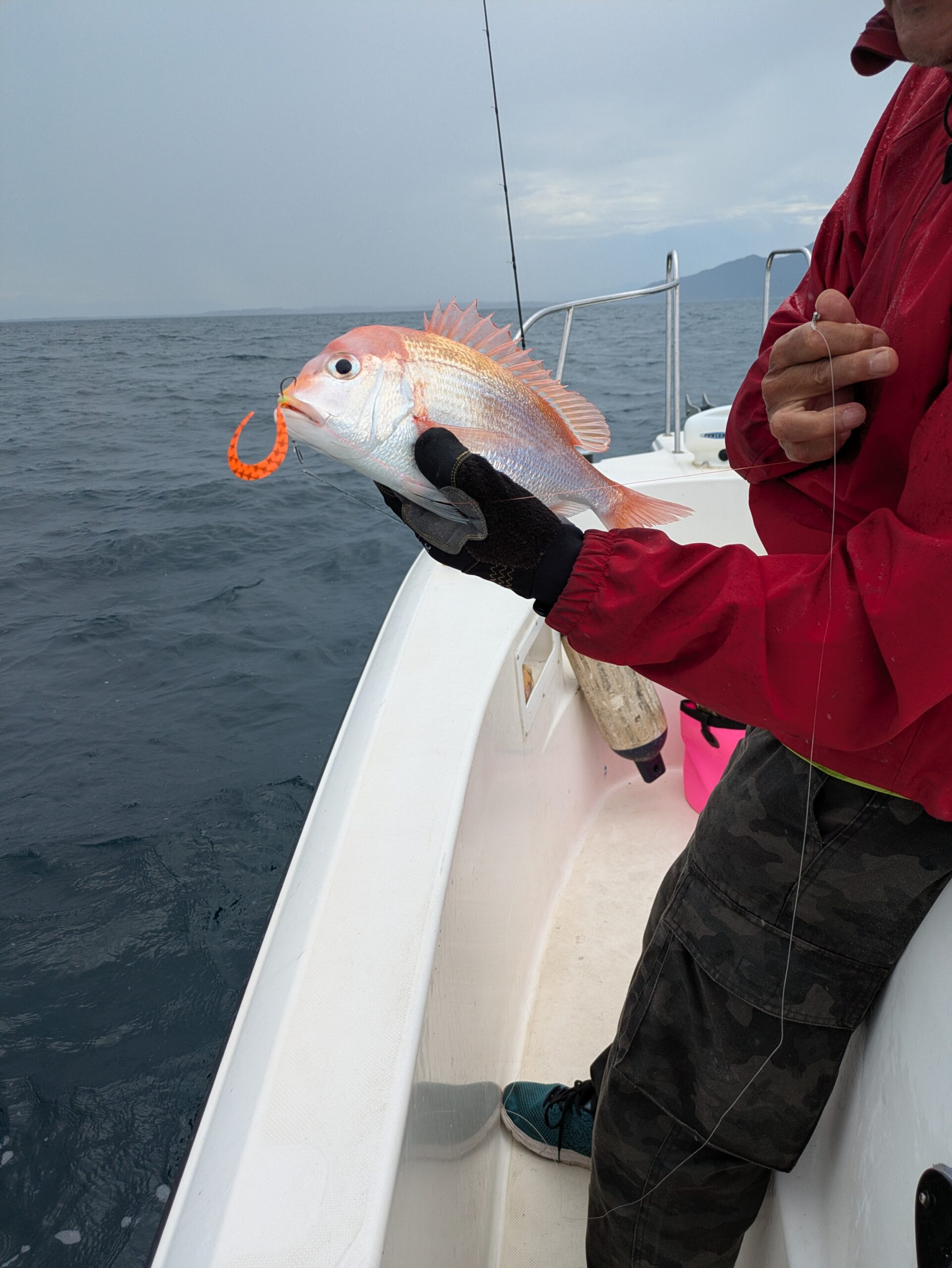 最後に甘鯛のポイントを流すと時合に入ったのか次々とアタリが出ます。 あがれば良型で何とかお土産ゲットとなりました。 やる気スイッチ船内に欲しいですね。