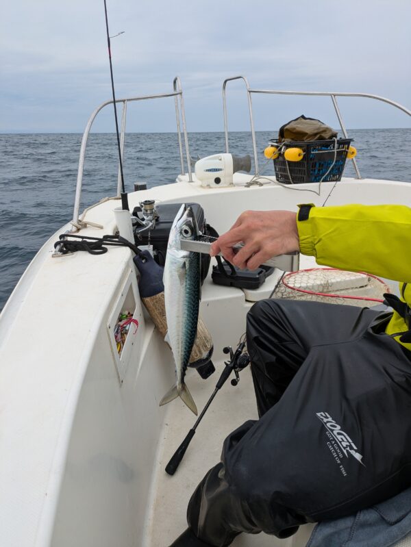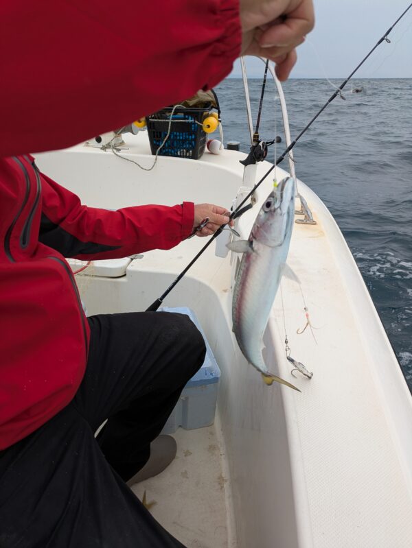 少し風が落ち着いたあたりで、沖に出ますがやはりサバ祭り。 なんとかアマダイがあがり、タイのアタリも出ますが乗り切らず。 風が強くなり終了となりました。 貧果ですみません😢 最後に浅場で良型のアジでした。