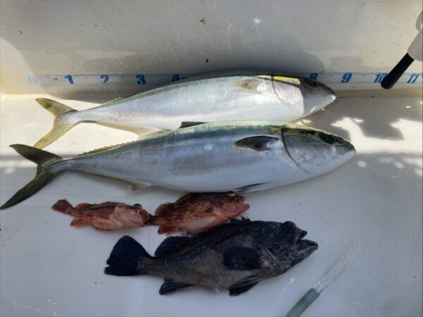 しかし朝から風が強く沖は釣りづらかったため浅場の根周り。根魚に遊んでもらいました。